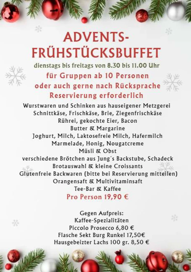 Auch dieses Jahr haben wir für Euch in der Vorweihnachtszeit unser herrliches Frühstücks-Buffet.