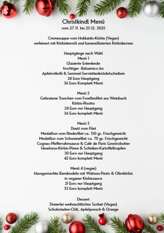 Wählen Sie aus vier Menüs mit Vor- und Nachspeise