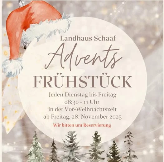 Advents-breakfast buffet Starting Friday, November 28, 2025 – 8:30 AM – 11:00 AM This year, we’re once again offering our wonderful breakfast buffet during the pre-Christmas season. Ideal for clubs, teams, birthdays, get-togethers with friends, groups of friends, or just…